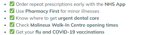 Tip: Order repeat prescriptions early to avoid running out during busy times.